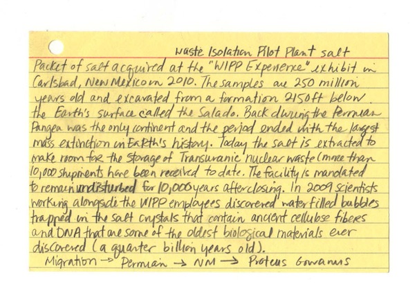 The Object Show is presented by Proteus Gowanus with curatorial assistance from the artist Sal Randolph, creator of the Free Biennale, Free Manifesta, Free Words and Manifesta, and from Smudge Studio, creator of the book Geologic City: A Field Guide to the GeoArchitecture of New York, exploring the convergence of the geologic and the human, and of Friends of the Pleistocene. Sal will also be our Artist-In-Residence for the duration of the Objects Show. We also wish to thank Twig Terraria, on 4th Ave and President, for assisting us with our display by providing glass terraria.