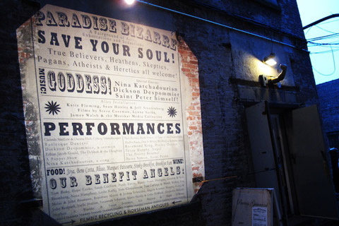 On June 11, 2011, Proteus Gowanus hosted its second annual benefit party, Paradise Bizarre: A Fairground of Acts, Exhortations and Seductions. Our rooms and hallways were transformed into a veritable carnival-bizarre of music, Writhers, preachers, strumpets, angels, saints, demons, fixers, puppets, and therapists all vying for the souls of those in attendance.