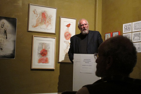 About 100 sinners were welcomed down the alleyway by St. Peter himself (under the watchful gaze of a giant, breathing, golden God) to enjoy fourteen performances, delicious food and drink, and art, artifacts and books gathered over the course of the Paradise year.