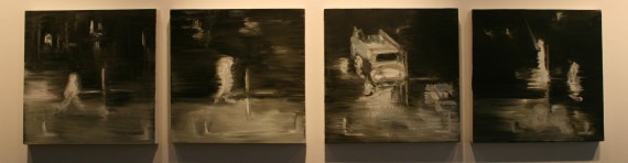 Other Labor artists included Blake Fall-Conroy who exhibited his Minimum Wage Machine, a lucite box with a crank balanced on spindled wooden legs. When visitors turned the crank, the machine dispensed pennies at the rate of 800 per hour, adding up to the NYS minimum wage, $8/hour. It was hard work! Here’s Blake’s website. Phillip Chen’s elegant prints of equations using tools instead of numbers suggested the humility as well as the utility of objects in our daily life. Their precision images float in a dim, sepia light like waking dreams: both hyper-real and not real at all, suggesting half-suppressed memory in an atmosphere of loss and expectation. More of Phillip’s work can be found here.
