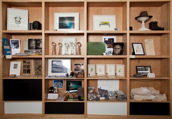 More intuitively engaging was Tatiana Istomina’s participatory installation, the Mercantile Evaluation Statistical System or MESS inviting viewers to ascribe value to diverse objects arrayed on our wall-sized shelves. Visitors were invited to inspect the objects and evaluate them on a scale of zero to fifty. They were then offered instructions on how to determine the “accurate” value of the objects using Tatiana’s MESS tool: a simple questionnaire which systematically evaluates objects based on various parameters selected by the artist. Some objects were valued similarly by viewers, such as the can of Spam, while other values diverged widely, such as the clay animal shaped by a small child. It made the capitalist system of supply and demand (if you ignore how rigged it is) look elegant in comparison! At the end of the show, Tatiana performed a statistical analysis of viewer responses. One finding: participants tend to ascribe greater value to objects with symbolic qualities. More information on Tatiana’s project can be found at her website and on her blog.