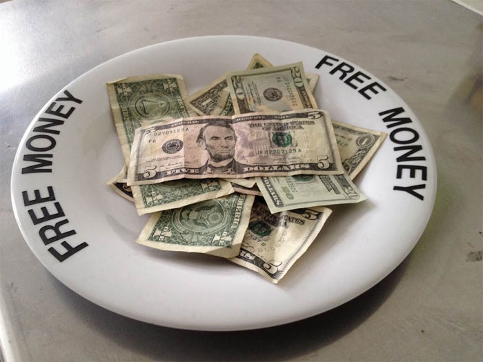 Currency will also a Money Happening instigated by artist Sal Randolph: Free Money is a plate of cash installed at Proteus Gowanus throughout the Currency exhibition. Anyone is free to take or add money as they choose.