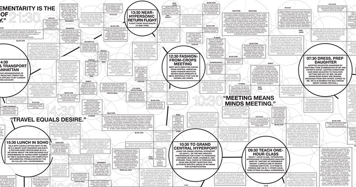 Cyborg Paradise, designer Tom Klinkowstein guides viewers through his nine-foot diagrammatic narrative about his vision of a cyborg paradise based on “The Singularity”, “A Day In The Life Of A Networked Designer’s Smart Things Or A Day In A Designer’s Networked Smart Things, 2030”. Monday, February 25, 2011. [more]