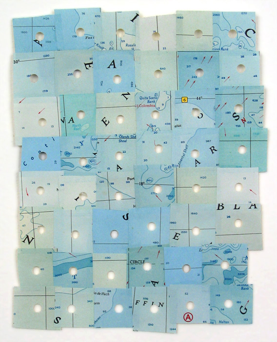 Jen Bervin will present a section of her large-scale installation River—a 230 ft. panoramic scale model of the Mississippi River rendered in reflective hand-sewn silver sequins. For Gowanus Branch, she will install a segment of the river’s meander belt, famously charted by Harold Norman Fisk in his Geological Investigation of the Mississippi River Alluvial Valley. Installed on the ceiling, the piece shows the river mapped from the geocentric perspective—from inside the earth’s interior looking up at the riverbed. Viewers will be able to see themselves reflected in it as they move through the space.